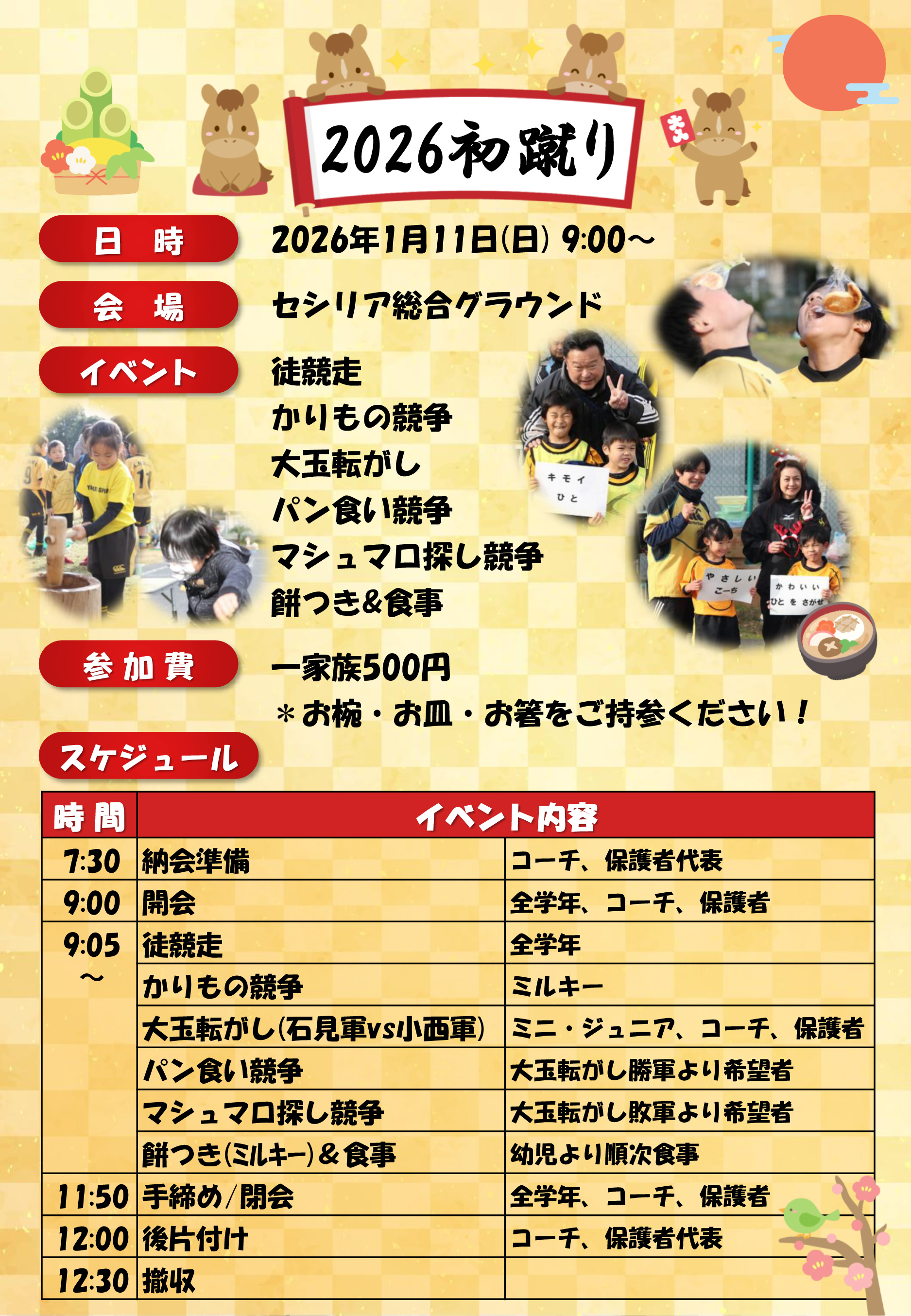 12/21の天候予報を鑑み、納会イベントは年明けの初蹴りイベントへ変更と致します。